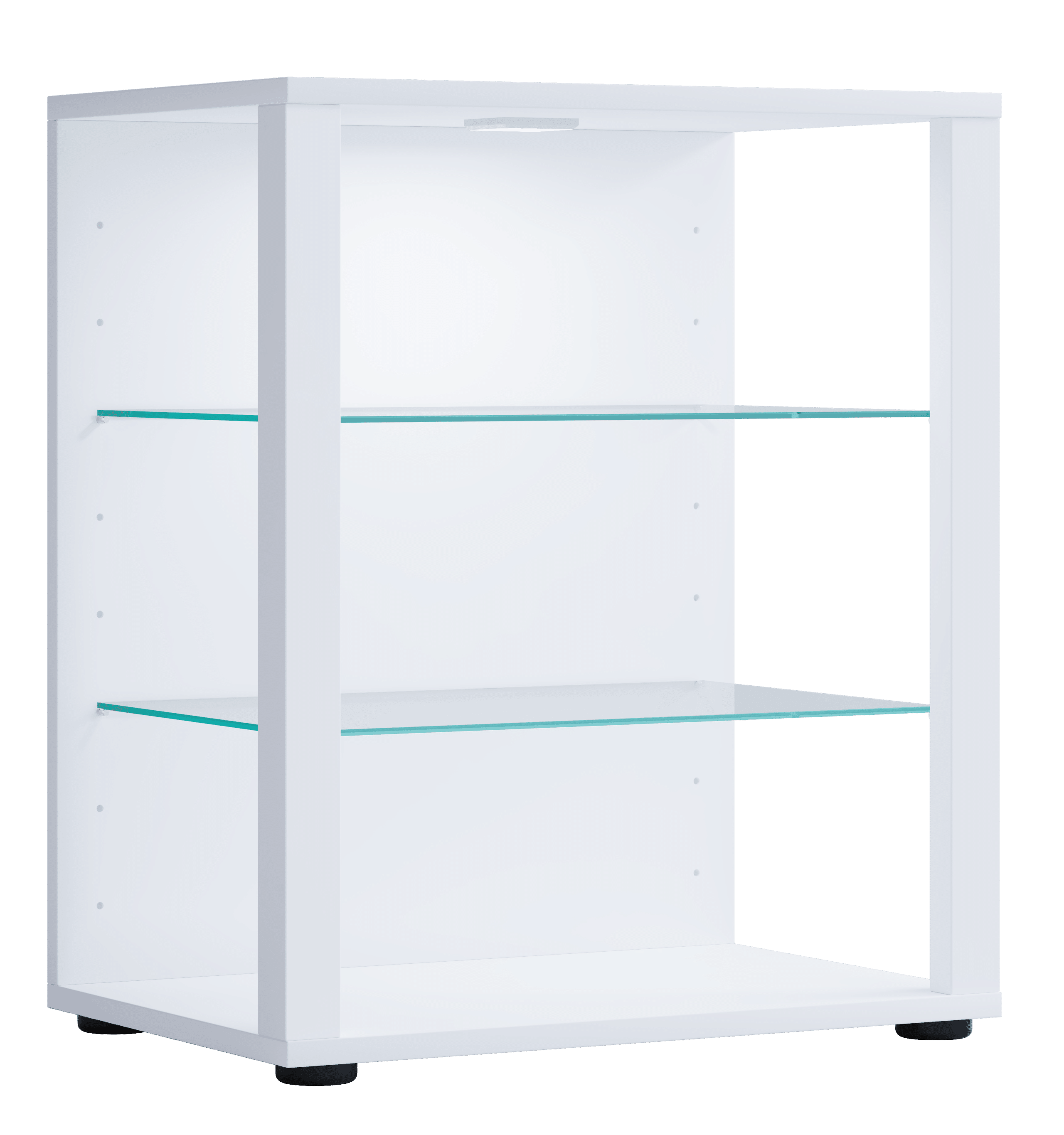 Med udstillingsvinduet “Glasol S” har designeren smukt kombineret funktion og udseende. To smalle tværstænger giver kollektionen et særligt look. Glashylde