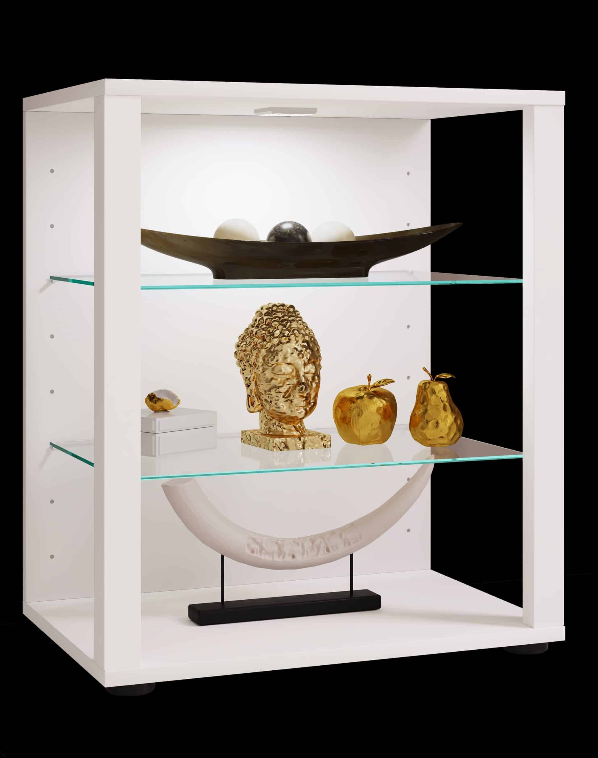 Højdepunkter: – To glashylder – Individuelt justerbare hylder – Mål H. 60 x B. 52 x D. 35 cm Med kollektionen “Glasol S” har designeren smukt kombineret funktion og udseende. To smalle tværstænger giver kollektionen et særligt look. Glashylderne