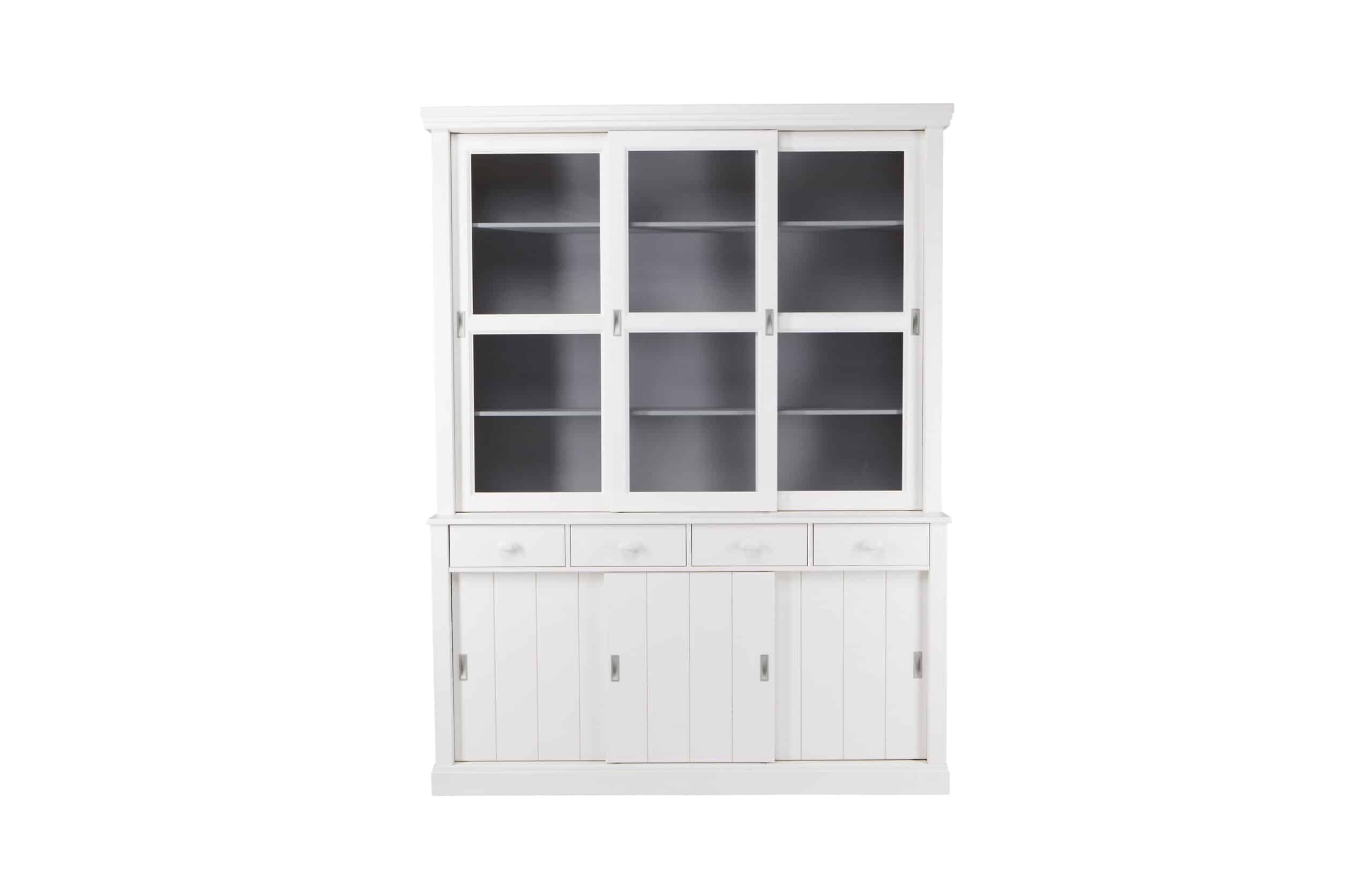 Stilfuldt Lagos vitrineskab fra hollandske Woood, der passer godt til dig, der kan lide den landlige stilart.Skabet er lavet i hvidt lakeret fyrretræ med en bagvæg i MDF og hylder i spånplade. Det er designet med tre almindelige skydelåger, tre skydelåger